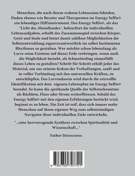 Dieses Buch informiert über die Theorie und Analyse des kabbalistischen Energy Selfies®. Menschen, die nach ihrem wahren Lebenssinn fahnden, finden ein lebendiges Hilfsinstrument, um ihre persönlichen Lebensaufgaben kennen zu lernen. Wer möchte lebenslang als Larve seine Existenz auf dieser Erde verbringen, wenn auch die Möglichkeit besteht als Schmetterling sinnerfüllt dieses Leben zu gestalten. Schritt für Schritt erhält jeder mit diesem Buch das Material, um aus seinem Kokon der Verhaftungen sanft und in voller Verbindung mit den universellen Kräften zu entschlüpfen. Das Larvendasein wird durch die reizvolle Identifikation mit dem eigenen Lebensplan im Energy Selfie® beendet.