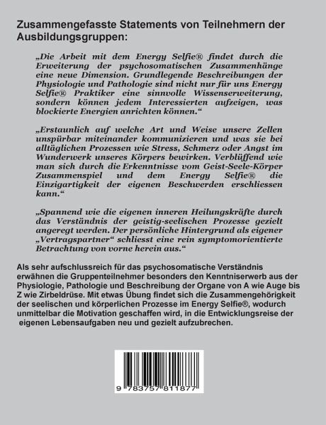 Dieses Buch informiert Sie über die Theorie und Praxis der psychosomatischen Zusammenhänge aus dem Energy Selfie®. Nachdem Sie in Band 1 einiges über ihre Lebensaufgaben erfahren durften, finden Sie in Band 2 den Aufbau über die Teamarbeit zwischen Körper, Geist und Seele. Wie in jedem gemeinsamen internen Arbeitsprozess kann es zu spezifischen energetischen Dysbalancen kommen, die sich in entsprechenden somatischen Störungen ausdrücken. Werden Sie zum Detektiv im Zusammenspiel ihrer psychosomatischen Prozesse, indem Sie sich im Besonderen mit den Hinweiswegen aus ihrem Energy Selfie® auseinandersetzen. Gewinnen Sie alleine oder unter Mithilfe von einem Energy Selfie® Berater/Therapeuten Erkenntnisse im Bezug auf ihre Missbefindlichkeiten.