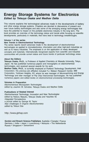 This volume illustrates the technological advances made in recent years in the development of battery and other energy storage systems. Discussions of present and near future battery technologies are included as well as emerging energy technologies that have the potential to impact on the portable electronics industry in the long term. This text provides a complete overview of the technology status and trends, with a focus on scientific developments, particularly in materials, that have led to technological breakthroughs.