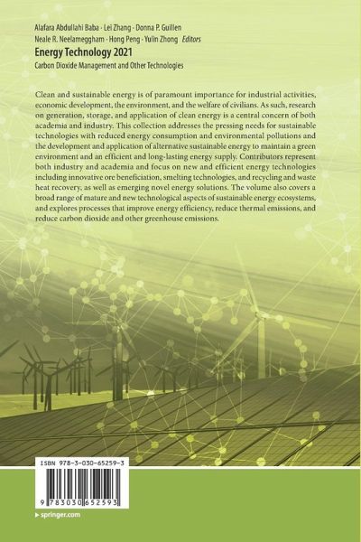 Clean and sustainable energy is of paramount importance for industrial activities, economic development, environment, and welfare of civilians. As such, research on generation, storage, and application of clean energy is a central concern of both academia and industry. This collection addresses the pressing needs for sustainable technologies with reduced energy consumption and environmental pollutions and the development and application of alternative sustainable energy to maintain a green environment and efficient and long-lasting energy supply. Contributors represent both industry and academia and focus on new and efficient energy technologies including innovative ore beneficiation, smelting technologies, and recycling and waste heat recovery, as well as emerging novel energy solutions. The volume also covers a broad range of mature and new technological aspects of sustainable energy ecosystems, processes that improve energy efficiency, reduce thermal emissions, and reduce carbon dioxide and other greenhouse emissions.