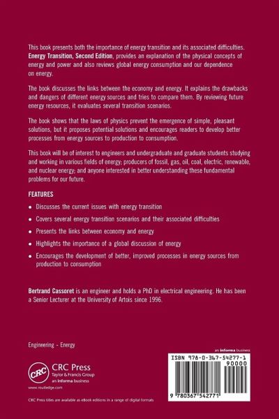 This book presents both the importance of energy transition and its associated difficulties. Energy Transition, Second Edition, provides an explanation of the physical concepts of energy and power and also reviews global energy consumption and our dependence on energy.