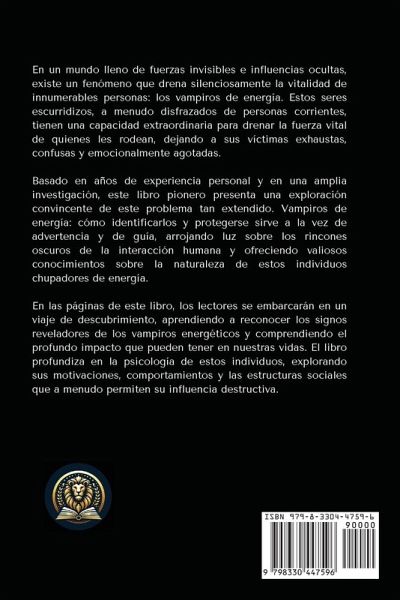 En un mundo lleno de fuerzas invisibles e influencias ocultas, existe un fenómeno que drena silenciosamente la vitalidad de innumerables personas: los vampiros de energía. Estos seres escurridizos, a menudo disfrazados de personas corrientes, tienen una capacidad extraordinaria para drenar la fuerza vital de quienes les rodean, dejando a sus víctimas exhaustas, confusas y emocionalmente agotadas. Basado en años de experiencia personal y en una amplia investigación, este libro pionero presenta una exploración convincente de este problema tan extendido. Vampiros de energía: cómo identificarlos y protegerse sirve a la vez de advertencia y de guía, arrojando luz sobre los rincones oscuros de la interacción humana y ofreciendo valiosos conocimientos sobre la naturaleza de estos individuos chupadores de energía. En las páginas de este libro, los lectores se embarcarán en un viaje de descubrimiento, aprendiendo a reconocer los signos reveladores de los vampiros energéticos y comprendiendo el profundo impacto que pueden tener en nuestras vidas. El libro profundiza en la psicología de estos individuos, explorando sus motivaciones, comportamientos y las estructuras sociales que a menudo permiten su influencia destructiva. Este libro es más que una exposición de personalidades negativas. Es una llamada a la acción, que ofrece a los lectores estrategias prácticas para protegerse de los efectos debilitadores de los vampiros energéticos. Desde el establecimiento de límites hasta el cultivo de la autoconciencia, ofrece un completo conjunto de herramientas para mantener el bienestar emocional y espiritual frente a estos encuentros agotadores. Y lo que es más, Los vampiros energéticos reta a los lectores a mirar más allá de la superficie, cuestionando las normas sociales y las creencias, a menudo no examinadas, que pueden mantenernos atrapados en ciclos de negatividad y dudas sobre nosotros mismos. Fomenta un cambio de paradigma, invitando a los lectores a abrazar su verdadero potencial y a liberarse de las limitaciones impuestas por los demás. Al pasar estas páginas, prepárate para abrir los ojos a una realidad oculta que probablemente ha afectado a tu vida de formas que nunca imaginaste. Armado con el conocimiento y las herramientas proporcionadas en este libro, podrá navegar por el complejo paisaje de las interacciones humanas con más claridad, confianza y poder personal. Embárcate en este viaje transformador y descubre cómo recuperar tu energía, proteger tu espíritu y convertirte en la mejor versión de ti mismo, libre de la influencia de los vampiros energéticos.
