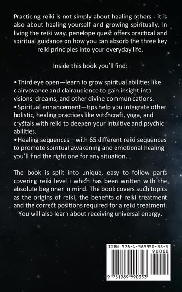 Practicing reiki is not simply about healing others - it is also about healing yourself and growing spiritually. In living the reiki way, penelope quest offers practical and spiritual guidance on how you can absorb the three key reiki principles into your everyday life. Inside this book you'll find: Third eye open¿learn to grow spiritual abilities like clairvoyance and clairaudience to gain insight into visions, dreams, and other divine communications. Spiritual enhancement¿tips help you integrate other holistic, healing practices like witchcraft, yoga, and crystals with reiki to deepen your intuitive and psychic abilities. Healing sequences¿with 65 different reiki sequences to promote spiritual awakening and emotional healing, you'll find the right one for any situation. The book is split into unique, easy to follow parts covering reiki level i which has been written with the absolute beginner in mind. The book covers such topics as the origins of reiki, the benefits of reiki treatment and the correct positions required for a reiki treatment. You will also learn about receiving universal energy.
