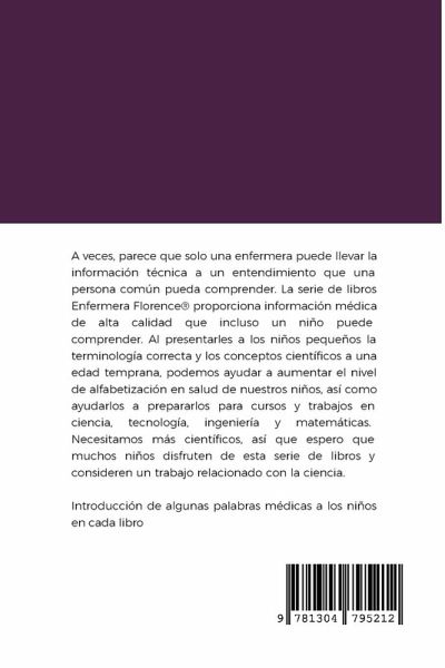 A veces, parece que solo una enfermera puede llevar la información técnica a un entendimiento que una persona común pueda comprender. La serie de libros Enfermera Florence® proporciona información médica de alta calidad que incluso un niño puede comprender. Al presentarles a los niños pequeños la terminología correcta y los conceptos científicos a una edad temprana, podemos ayudar a aumentar el nivel de alfabetización en salud de nuestros niños, así como ayudarlos a prepararlos para cursos y trabajos en ciencia, tecnología, ingeniería y matemáticas. Necesitamos más científicos, así que espero que muchos niños disfruten de esta serie de libros y consideren un trabajo relacionado con la ciencia. Introducción de algunas palabras médicas a los niños en cada libro
