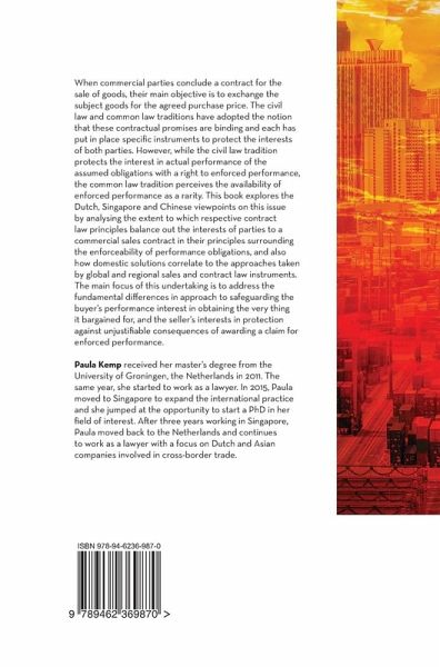 When commercial parties conclude a contract for the sale of goods, their main objective is to exchange the subject goods for the agreed purchase price. The civil law and common law traditions have adopted the notion that these contractual promises are binding and each has put in place specific instruments to protect the interests of both parties. However, while the civil law tradition protects the interest in actual performance of the assumed obligations with a right to enforced performance, the common law tradition perceives the availability of enforced performance as a rarity. This book explores the Dutch, Singapore and Chinese viewpoints on this issue by analysing the extent to which respective contract law principles balance out the interests of parties to a commercial sales contract in their principles surrounding the enforceability of performance obligations, and also how domestic solutions correlate to the approaches taken by global and regional sales and contract law instruments. The main focus of this undertaking is to address the fundamental differences in approach to safeguarding the buyer's performance interest in obtaining the very thing it bargained for, and the seller's interests in protection against unjustifiable consequences of awarding a claim for enforced performance.