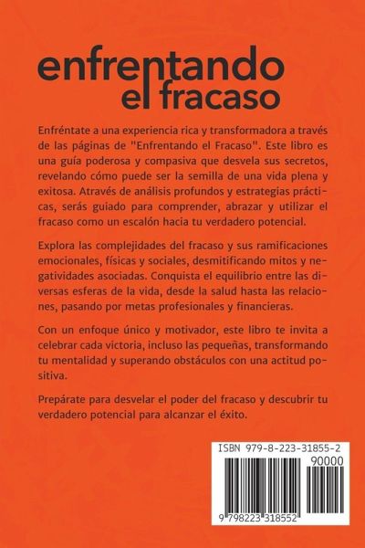 Enfréntate a una experiencia rica y transformadora a través de las páginas de "Enfrentando el Fracaso". Este libro es una guía poderosa y compasiva que desvela sus secretos, revelando cómo puede ser la semilla de una vida plena y exitosa. Através de análisis profundos y estrategias prácticas, serás guiado para comprender, abrazar y utilizar el fracaso como un escalón hacia tu verdadero potencial. Explora las complejidades del fracaso y sus ramificaciones emocionales, físicas y sociales, desmitificando mitos y negatividades asociadas. Conquista el equilibrio entre las diversas esferas de la vida, desde la salud hasta las relaciones, pasando por metas profesionales y financieras. Con un enfoque único y motivador, este libro te invita a celebrar cada victoria, incluso las pequeñas, transformando tu mentalidad y superando obstáculos con una actitud positiva. Prepárate para desvelar el poder del fracaso y descubrir tu verdadero potencial para alcanzar el éxito.