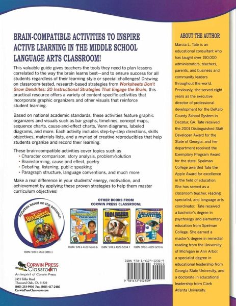 Marcia L. Tate, EdD, is the former executive director of professional development for the DeKalb County School System in Decatur, Georgia. During her thirty-year career with the district, she has been a classroom teacher, reading specialist, language arts coordinator, and staff development executive director. Marcia is currently an educational consultant and has taught over 500,000 administrators, teachers, parents, and business and community leaders throughout the world. She is the author of the eight books in the best-selling Worksheets Don't Grow Dendrites series and four additional books: Formative Assessment in a Brain-Compatible Classroom: How Do We Really Know They're Learning?, 100 Brain-Friendly Lessons for Unforgettable Teaching and Learning K-8, and 100 Brain-Friendly Lessons for Unforgettable Teaching and Learning 9-12, and her latest book, Healthy Teachers, Happy Classrooms that is designed to address both the personal and professional lives of all educators. Participants in her workshops refer to them as some of the best ones they have ever experienced since Marcia uses the twenty strategies outlined in her books to actively engage her audiences. Marcia received her bachelor's degree in psychology and elementary education from Spelman College in Atlanta, Georgia. She earned her master's degree in remedial reading from the University of Michigan in Ann Arbor, her specialist degree in educational leadership from Georgia State University, and her doctorate in educational leadership from Clark Atlanta University. Marcia is married to Tyrone Tate and is the proud mother of three children: Jennifer, Jessica, and Christopher, and nine grandchildren: Christian, Aidan, Maxwell, Aaron, Roman, Shiloh, Aya, Noah, and Alyssa. Marcia and her husband own the company Developing Minds, Inc. and can be contacted by calling the company at (770) 918-5039, emailing her at marciata@ bellsouth.net, or by visiting her website at www.developingmindsinc.com. You can also follow her on Twitter and Instagram at @DrMarciaTate.