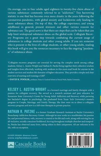 On average, one in four adults aged eighteen to twenty-five claim abuse of various substances commonly referred to as "addiction." This harrowing statistic is one that has become even more drastic in the years following the coronavirus pandemic, with global anxiety and lockdowns only leading to more substance abuse. On top of this, the college experience, and young adulthood in general, present stressors and other various reasons for substance use. The good news is that there are steps that can be taken that can help limit widespread substance abuse on the global scale. Collegiate Recovery Programs are a great step towards combating the current usage of substances in college students and other young adults. If you are someone who is present in the lives of college students, or other young adults, reading this book will give you the resources necessary to face the ongoing "pandemic" of substance abuse.