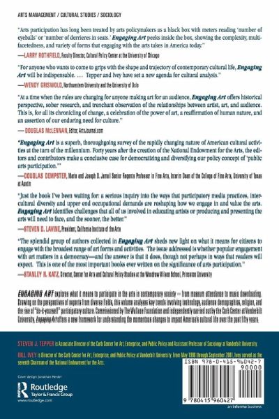 Engaging Art explores what it means to participate in the arts in contemporary society - from museum attendance to music downloading. Drawing on the perspectives of experts from diverse fields (including Princeton scholars Robert Wuthnow and Paul DiMaggio; Barry Schwartz, author of The Paradox of Choice; and MIT scholars Henry Jenkins and Mark Schuster), this volume analyzes key trends involving technology, audience demographics, religion, and the rise of "do-it-yourself" participatory culture. Commissioned by The Wallace Foundation and independently carried out by the Curb Center at Vanderbilt University, Engaging Art offers a new framework for understanding the momentous changes impacting America's cultural life over the past fifty years.