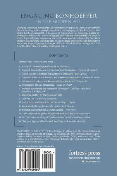 Dietrich Bonhoeffer was one of the most important thinkers of the twentieth century. His Life Together and Discipleship are considered to be spiritual classics, and few theological works have made as much of an impact as Letters and Papers from Prison upon publication. But who actually is this Bonhoeffer? Do we really know him? In this magisterial collection, leading international scholars discuss and critically interact with the ways in which a variety of significant figures have engaged with Bonhoeffers thought since his death.