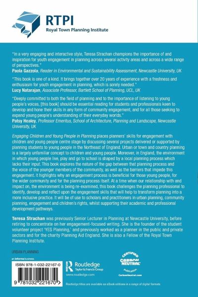 'Clearly written and empathetically engaging the reader, this book draws on Teresa Strachan's experience and research to show in detail how planners can engage with young people. Deeply committed to both the field of planning and to the importance of listening to young people's voices, it should be essential reading for students and professionals keen to develop and hone their skills in any form of community engagement, and for all those seeking to expand young people's understanding of their everyday worlds'