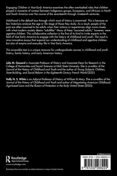 Adulthood is the default lens through which most of history is examined. This is because so few historians analyze the age or life stage of those they study. As a result, people of the past are often assumed to be adults when their actions or experiences align more closely with what modern society deems "adultlike." Many of these "assumed adults," however, were agentive children. This collaborative collection is the first of its kind to invite experts in the field of Vast Early America to engage with the history of childhood and youth. The result is nine innovative essays that expand our understanding of childhood and agentive children but also of empire and everyday life in Vast Early America.