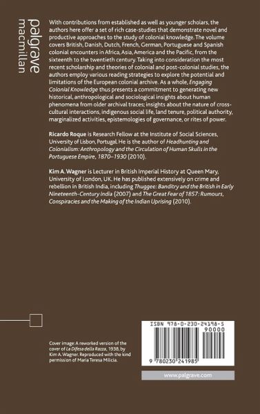Illustrations Acknowledgements Notes on Contributors Introduction: Engaging Colonial Knowledge; R.Roque & K.A.Wagner PART I: EPISTEMIC FISSURES 'In Cold Blood': Hierarchies of Credibility and the Politics of Colonial Narratives; A.L.Stoler North Indian Lives in the Archives of the Colonial State; L.Denault Reading Farm and Forest: Colonial Forest Science and Policy in Southern Nigeria; P.von Hellermann PART II: INDIGENOUS VOICES IN COLONIAL RECORDS Insights from the 'Ancient Word': The Use of Colonial Sources in the Study of Aztec Society; C.Dodds Pennock 'In unrestrained conversation': Approvers and the Colonial Ethnography of Crime in Nineteenth-Century India; K.A.Wagner From Civil Servant to Little King: an Indigenous Construction of Colonial Authority in Early Nineteenth-century South India; N.Brimnes French Anthropology and the Durkheimians in Colonial Indochina; S.Bayly PART III: ARCHIVES OF ENTANGLEMENT Treachery and Ethnicity in Portuguese Representations of Sri Lanka; A.Strathern William Hodges as Anthropologist and Historian; N.Thomas Entangled with Otherness: Military Ethnographies of Headhunting in East Timor; R.Roque 'What do you Really Want in German East Africa, Herr Professor?' Counterinsurgency and the Science Effect in Colonial Tanzania; A.Zimmerman Endnotes