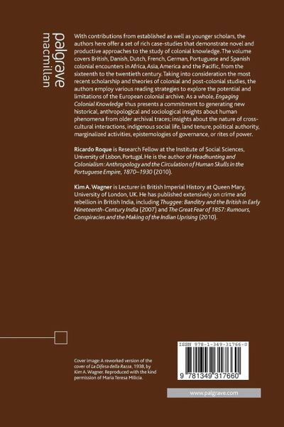 Illustrations Acknowledgements Notes on Contributors Introduction: Engaging Colonial Knowledge; R.Roque & K.A.Wagner PART I: EPISTEMIC FISSURES 'In Cold Blood': Hierarchies of Credibility and the Politics of Colonial Narratives; A.L.Stoler North Indian Lives in the Archives of the Colonial State; L.Denault Reading Farm and Forest: Colonial Forest Science and Policy in Southern Nigeria; P.von Hellermann PART II: INDIGENOUS VOICES IN COLONIAL RECORDS Insights from the 'Ancient Word': The Use of Colonial Sources in the Study of Aztec Society; C.Dodds Pennock 'In unrestrained conversation': Approvers and the Colonial Ethnography of Crime in Nineteenth-Century India; K.A.Wagner From Civil Servant to Little King: an Indigenous Construction of Colonial Authority in Early Nineteenth-century South India; N.Brimnes French Anthropology and the Durkheimians in Colonial Indochina; S.Bayly PART III: ARCHIVES OF ENTANGLEMENT Treachery and Ethnicity in Portuguese Representations of Sri Lanka; A.Strathern William Hodges as Anthropologist and Historian; N.Thomas Entangled with Otherness: Military Ethnographies of Headhunting in East Timor; R.Roque 'What do you Really Want in German East Africa, Herr Professor?' Counterinsurgency and the Science Effect in Colonial Tanzania; A.Zimmerman Endnotes