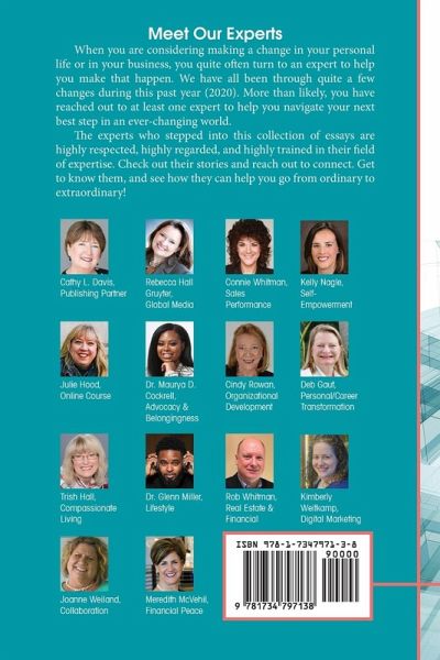 Meet Our Experts When you are considering making a change in your personal life or in your business, you quite often turn to an expert to help you make that happen. We have all been through quite a few changes during this past year (2020). More than likely, you have reached out to at least one expert to help you navigate your next best step in an ever-changing world. The experts who stepped into this collection of essays are highly respected, highly regarded, and highly trained in their field of expertise. Check out their stories and reach out to connect. Get to know them, and see how they can help you go from ordinary to extraordinary!