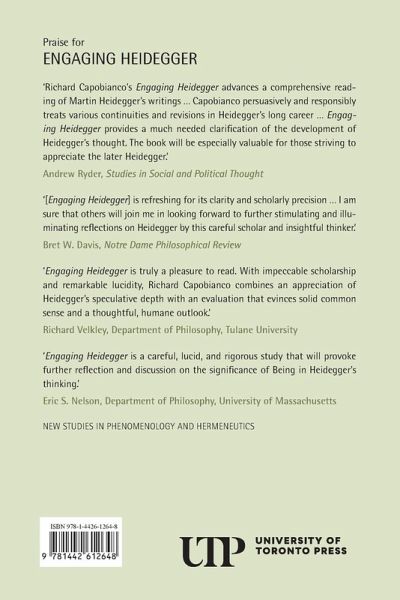 One of the most important philosophers of the twentieth century, Martin Heidegger was primarily concerned with the ‘question of Being.’ However, recent scholarship has tended to marginalize the importance of the name of Being in his thought. Through a focused reading of Heidegger's texts, and especially his late and often overlooked Four Seminars (1966-1973), Richard Capobianco counters this trend by redirecting attention to the centrality of the name of Being in Heidegger's lifetime of thought. Capobianco gives special attention to Heidegger's resonant terms Ereignis and Lichtung and reads them as saying and showing the very same fundamental phenomenon named ‘Being itself ’. Written in a clear and approachable manner, the essays in Engaging Heidegger examine Heidegger's thought in view of ancient Greek, medieval, and Eastern thinking, and they draw out the deeply humane character of his ‘meditative thinking.’
