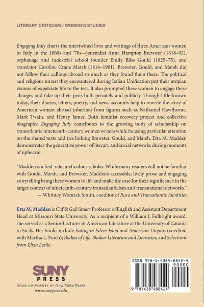 Traces literary and social connections among three American women navigating the changing political landscape of 1860s and '70s Italy.