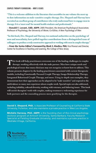 This book will help practitioners overcome one of the leading challenges in couples therapy: working effectively with the male partner. Men have unique needs and psychological issues that many clinicians may not recognize or know how to address. This volume presents chapters by the leading practitioners associated with current therapeutic models, including Emotionally Focused Couple Therapy, Imago Relationship Therapy, Integrated Behavioral Couple Therapy, and more. Using in-depth case examples, they demonstrate how their approaches can be adapted to be "male-sensitive" and respond to the ambivalence so many men experience about couples work. Special topics are also addressed, including infidelity, cultural diversity, working with veterans, and fathering issues. This book will enrich therapists work with couples, making treatment a welcoming experience for both partners and the treatment process more gratifying for the therapist.