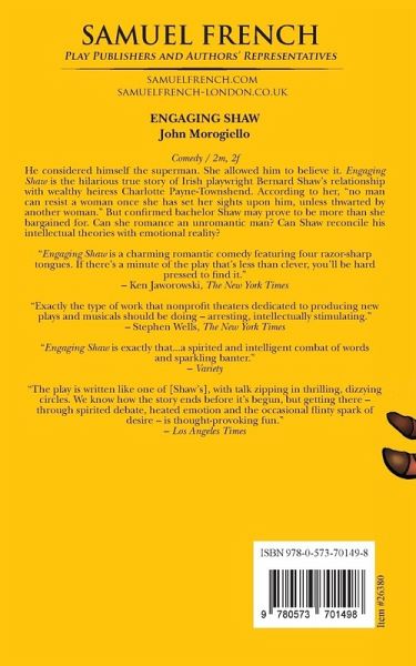 He considered himself the superman. She allowed him to believe it. Engaging Shaw is the hilarious true story of Irish playwright Bernard Shaw's relationship with wealthy heiress Charlotte Payne-Townshend. According to her, "no man can resist a woman once she has set her sights upon him, unless thwarted by another woman." But confirmed bachelor Shaw may prove to be more than she bargained for. Can she romance an unromantic man? Can Shaw reconcile his intellectual theories with emotional re