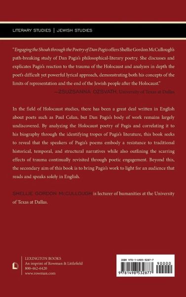In the field of Holocaust Studies, there has been a great deal written in English about poets such as Paul Celan, but Dan Pagis's body of work remains largely undiscovered. By analyzing the Holocaust poetry of Dan Pagis and correlating it to his biography through the identifying tropes of Pagis's literature, this book seeks to reveal that the speakers of Pagis' poems embody a resistance to traditional historical, temporal, and structural narratives while also outlining the scarring effects of trauma continually revisited through poetic engagement. Beyond this, the secondary aim of this book is to bring Pagis's work to light for an audience that solely reads and speaks English.