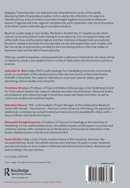 Based on a wide range of case studies, the book is divided into twenty-seven chapters across which cultural, social, and political issues relating to transculturality from Antiquity to today and within both Asian and European regions are explored. Key terms related to the field of transculturality are also discussed within each chapter, and the rich variety of approaches provided by the contributing authors offer the reader an expansive look into the field of transculturality.