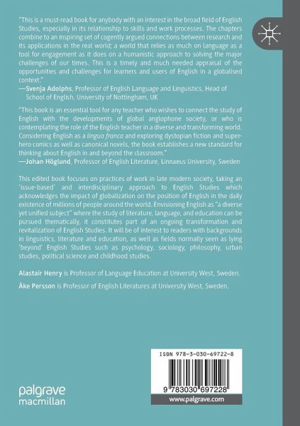 This edited book focuses on practices of work in late modern society, taking an 'issue-based' and interdisciplinary approach to English Studies which acknowledges the impact of globalization on the position of English in the daily existence of millions of people around the world. Envisioning English as "a diverse yet unified subject" where the study of literature, language, and education can be pursued thematically, it constitutes part of an ongoing transformation and revitalization of English Studies. It will be of interest to readers with backgrounds in linguistics, literature and education, as well as fields normally seen as lying 'beyond' English Studies such as psychology, sociology, philosophy, urban studies, political science and childhood studies.