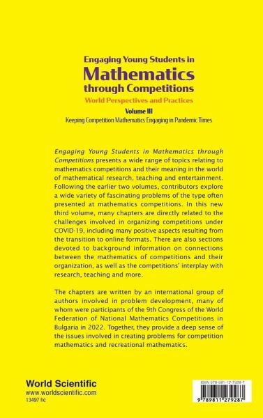 Engaging Young Students in Mathematics through Competitions presents a wide range of topics relating to mathematics competitions and their meaning in the world of mathematical research, teaching and entertainment. Following the earlier two volumes, contributors explore a wide variety of fascinating problems of the type often presented at mathematics competitions. In this new third volume, many chapters are directly related to the challenges involved in organizing competitions under Covid-19, including many positive aspects resulting from the transition to online formats. There are also sections devoted to background information on connections between the mathematics of competitions and their organization, as well as the competitions' interplay with research, teaching and more. The various chapters are written by an international group of authors involved in problem development, many of whom were participants of the 9th Congress of the World Federation of National Mathematics Competitions in Bulgaria in 2022. Together, they provide a deep sense of the issues involved in creating such problems for competition mathematics and recreational mathematics.