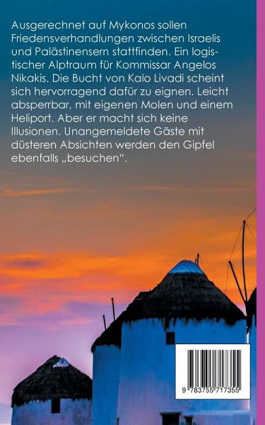 Ausgerechnet auf Mykonos sollen Friedensverhandlungen zwischen Israelis und Palästinensern stattfinden. Ein logistischer Alptraum für Kommissar Angelos Nikakis. Die Bucht von Kalo Livadi scheint sich hervorragend dafür zu eignen. Leicht absperrbar, mit eigenen Molen und einem Heliport. Aber er macht sich keine Illusionen. Unangemeldete Gäste mit düsteren Absichten werden den Gipfel ebenfalls besuchen.Alle Fälle sind einzeln lesbar.