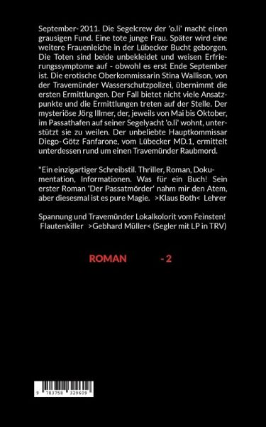 September-2011. Die Segelcrew der 'o.li' macht einen grausigen Fund. Eine tote junge Frau. Später wird eine weitere Frauenleiche in der Lübecker Bucht geborgen. Die Toten sind beide unbekleidet und weisen Erfrierungssymptome auf - obwohl es erst Ende September ist. Die erotische Oberkommissarin Stina Wallison, von der Travemünder Wasserschutzpolizei, übernimmt die ersten Er- mittlungen. Der Fall bietet nicht viele Ansatzpunkte und die Ermittlungen treten auf der Stelle. Der mysteriöse Jörg Illmer, der, jeweils von Mai bis Oktober, im Passathafen auf seiner Segelyacht 'o.li' wohnt, unterstützt sie zu weilen. Der unbeliebte Haupt- kommissar Diego-Götz Fanfarone, vom Lübecker MD.1, ermittelt unterdessen rund um einen Travemünder Raubmord.