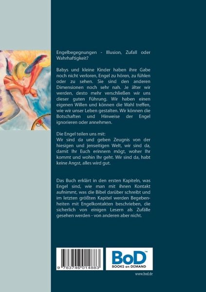 Engelbegegnungen - Illusion, Zufall oder Wahrhaftigkeit?In diesem Buch lesen Sie dramatische und lustige Erfahrungen vieler Menschen mit Engeln. Ich habe die Zuschriften, die ich erhalten habe, zu einem Buch zusammengefügt. Zum Beispiel: ein Auto streikt in der Einöde, ein Kind wird gerettet, ein Wunsch geht in Erfüllung, ein neuer Job, schwerer Unfall, bewusstlos beim Tauchen, Tod der Schwester wird angekündigt, Nahtoderfahrung während eines Unfalls und mehr. Außerdem erkläre ich was Engel sind, wie man mit ihnen Kontakt aufnimmt und was die Bibel darüber schreibt.Babys und kleine Kinder haben ihre Gabe noch nicht verloren, Engel zu hören, zu fühlen oder zu sehen. Sie sind den anderen Dimensionen noch sehr nah. Je älter wir werden, desto mehr verschließen wir uns dieser guten Führung. Wir haben einen eigenen Willen und können die Wahl treffen, wie wir unser Leben gestalten. Wir können die Botschaften und Hinweise der Engel ignorieren oder annehmen.