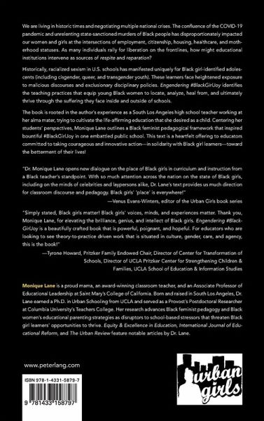 "Simply stated, Black girls matter! Black girls' voices, minds, and experiences matter. Thank you, Monique Lane, for elevating the brilliance, genius, and intellect of Black girls. Engendering #BlackGirlJoy is a beautifully crafted book that is powerful, poignant, and hopeful. For educators who are looking to see theory-to-practice driven work that is situated in culture, gender, care, and agency, this is the book!" --Tyrone Howard Pritzker Family Endowed Chair Director of Center for Transformation of Schools Director of UCLA Pritzker Center for Strengthening Children & Families UCLA School of Education & Information Studies
