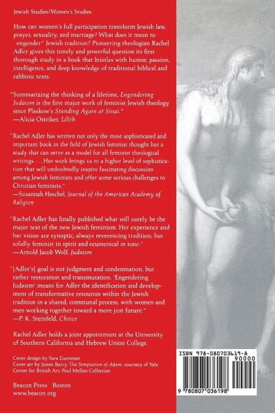 Winner of the National Jewish Book Award for 1998. How can women's full participation transform Jewish law, prayer, sexuality, and marriage? What does it mean to "engender" Jewish tradition? Pioneering theologian Rachel Adler gives this timely and powerful question its first thorough study in a book that bristles with humor, passion, intelligence, and deep knowledge of traditional biblical and rabbinic texts.
