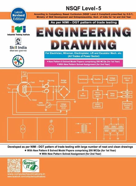 Computech Publications Engineering Drawing Electrical Sector Nsqf - Level - 5 Latest Revised Edition For Electrician, Wireman, Electroplater, Lift And Escalator Mech. Etc. (All Trades Of Power Sector) With New Pattern 8 Solved Model Paper (Comprising 200 Mcqs) For 1st And 2nd Yr. With New Pattern Solved Assignment (For 2nd Yr.) As Per Nimi - DGT Pattern Of Trade Testing According To Nsqf Level-5 Compliant Competency-Based Curriculum Prescribed By D.G.T. For 1st And 2nd Year
