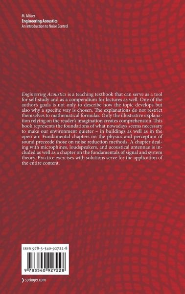 'Engineering acoustics' is a teaching textbook that can serve as a tool for self-study and as a compendium for lectures as well. One of the author's goals is not only to describe how the topic develops but also why a specific way is chosen. The explanations do not restrict themselves to mathematical formulas. Only the illustrative explanation relying on the reader's imagination creates comprehension. This book represents the foundations of what nowadays seems necessary to make our environment quieter - in buildings as well as in the open air. Fundamental chapters on the physics and perception of sound precede those on noise reduction methods. A chapter dealing with microphines, loudspeakers, and acoustical antennae is included as well as a chapter on the fundamentals of signal and system theory. Practice exercises with solutions serve for the application of the entire content.