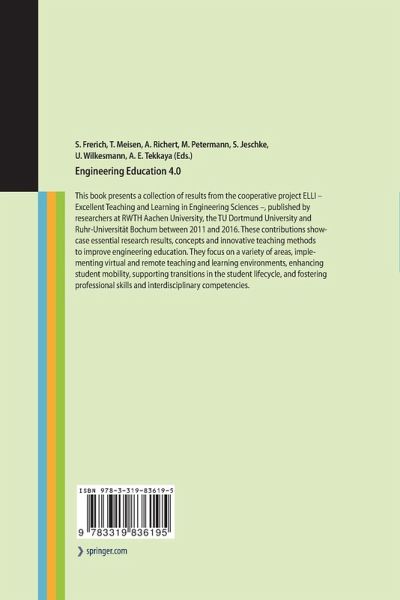 This book presents a collection of results from the interdisciplinary research project "ELLI" published by researchers at RWTH Aachen University, the TU Dortmund and Ruhr-Universität Bochum between 2011 and 2016. All contributions showcase essential research results, concepts and innovative teaching methods to improve engineering education. Further, they focus on a variety of areas, including virtual and remote teaching and learning environments, student mobility, support throughout the student lifecycle, and the cultivation of interdisciplinary skills.
