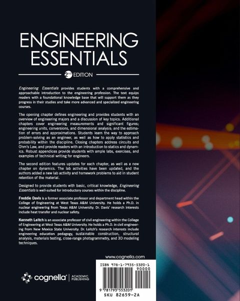Engineering Essentials provides students with a comprehensive and approachable introduction to the engineering profession. The text equips readers with a foundational knowledge base that will support them as they progress in their studies and take more advanced and specialized engineering courses. The opening chapter defines engineering and provides students with an overview of engineering majors and a discussion of key topics. Additional chapters cover engineering measurements and significant figures; engineering units, conversions, and dimensional analysis; and the estimation of errors and approximations. Students learn the way to approach problem-solving as an engineer, as well as how to apply statistics and probability within the discipline. Closing chapters address circuits and Ohm's Law, and provide readers with an introduction to statics and dynamics. Robust appendices provide students with ample labs, exercises, and examples of technical writing for engineers. The second edition features updates for each chapter, as well as a new chapter on dynamics. The lab activities have been updated, and the authors added a new lab activity and homework problems to aid in student retention of the material. Designed to provide students with basic, critical knowledge, Engineering Essentials is well-suited for introductory courses within the discipline.