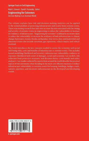 The volume explains how risk and decision-making analytics can be applied to the wicked problem of protecting infrastructure and society from extreme events. There is increasing research that takes into account the risks associated with the timing and severity of extreme events in engineering to reduce the vulnerability or increase the resiliency of infrastructure. "Engineering for extremes" is defined as measures taken to reduce the vulnerability or increase the resiliency of built infrastructure to climate change, hurricanes, storms, floods, earthquakes, heat waves, fires, and malevolent and abnormal events that include terrorism, gas explosions, vehicle impact and vehicle overload. The book introduces the key concepts needed to assess the economic and social well-being risks, costs and benefits of infrastructure to extreme events. This includes hazard modelling (likelihood and severity), infrastructure vulnerability, resilience or exposure (likelihood and extent of damage),social and economic loss models, risk reduction from protective measures, and decision theory (cost-benefit and utility analyses). Case studies authored by experts from around the world describe the practical aspects of risk assessment when deciding on the most cost-efficient measures to reduce infrastructure vulnerability to extreme events for housing, buildings, bridges, roads, tunnels, pipelines, and electricity infrastructure in the developed and developing worlds.