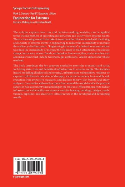 The volume explains how risk and decision-making analytics can be applied to the wicked problem of protecting infrastructure and society from extreme events. There is increasing research that takes into account the risks associated with the timing and severity of extreme events in engineering to reduce the vulnerability or increase the resiliency of infrastructure. "Engineering for extremes" is defined as measures taken to reduce the vulnerability or increase the resiliency of built infrastructure to climate change, hurricanes, storms, floods, earthquakes, heat waves, fires, and malevolent and abnormal events that include terrorism, gas explosions, vehicle impact and vehicle overload. The book introduces the key concepts needed to assess the economic and social well-being risks, costs and benefits of infrastructure to extreme events. This includes hazard modelling (likelihood and severity), infrastructure vulnerability, resilience or exposure (likelihood and extent of damage),social and economic loss models, risk reduction from protective measures, and decision theory (cost-benefit and utility analyses). Case studies authored by experts from around the world describe the practical aspects of risk assessment when deciding on the most cost-efficient measures to reduce infrastructure vulnerability to extreme events for housing, buildings, bridges, roads, tunnels, pipelines, and electricity infrastructure in the developed and developing worlds.