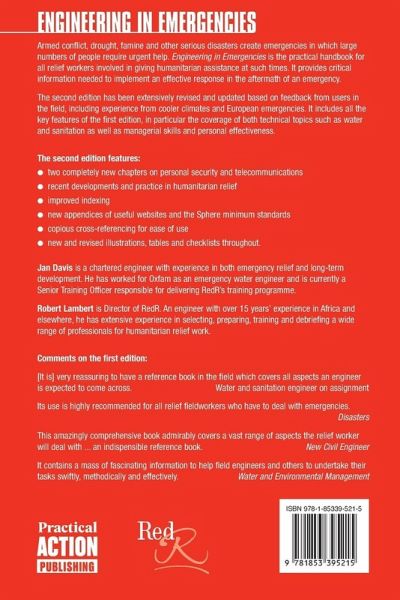 Engineering in Emergencies is a hugely successful practical handbook for all relief workers involved in giving humanitarian assistance. It provides the information needed to implement an effective engineering response in the aftermath of an emergency.