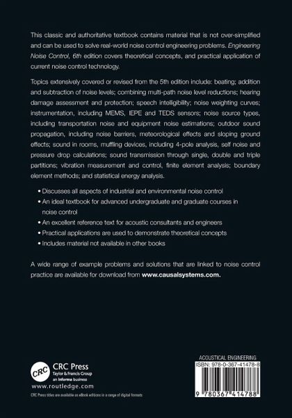Covers all aspects of industrial and environmental noise controlCore advanced undergraduate and graduate textbook; and reference text for acoustic consultants and engineersPractical applications demonstrate the theoretical concepts A wide range of example problems and solutions that are linked to noise control practice are available for download from www.causalsystems.com.