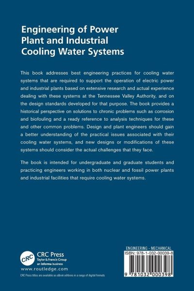 The book covers analysis techniques of common cooling water system problems and a historical perspective on solutions to chronic problems, such as corrosion and biofouling. It is intended for graduate students and practicing engineers working in nuclear and fossil power plants and industrial facilities using large amounts of cooling water.