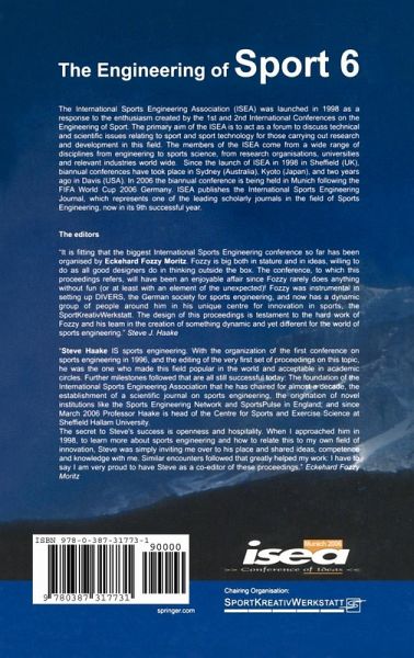 What you are holding in your hands is probably the best overview of activities in sports engineering available at the time of printing; i. e. the state of the art in summer 2006. It is the result of so many people's work to whom we are indebted that it is difficult to name them: there are the authors, the scientific advisory board, the scientific committee, the theme patrons, the publisher and printer, the advisors of whatever kind - and, here we have to make an exception, there is Ingo and Amanda. Nobody who has been part of the production of this book could have done without them, at the very least us: they handled issues you wouldn't even believe could turn up with efficiency and charm. Thanks, Ingo Valtingoier; thanks, Amanda Staley. In the accumulation of the contributions and the preparation of the proceedings we encountered one development that we were very happy about: the sports engineering community keeps growing - in the number or researchers and experts involved, but also in the breadth of disciplines and institutions contributing. This should definitely be interpreted as a positive development - even though in the evaluation of contributions this lead to a number of intricate discussions.