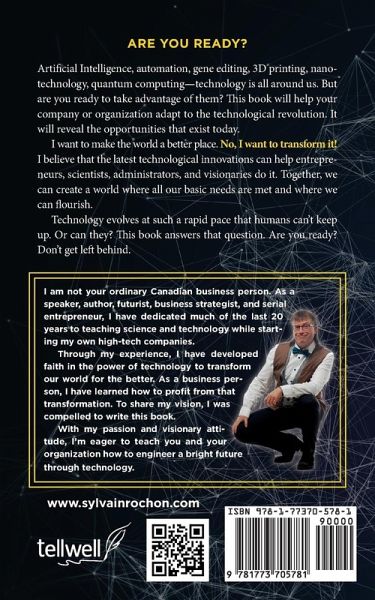 Are You Ready? Artificial Intelligence, automation, gene editing, 3D printing, nanotechnology, quantum computing—technology is all around us. But are you ready to take advantage of them? This book will help your company or organization adapt to the technological revolution. It will reveal the opportunities that exist today. I want to make the world a better place. No, I want to transform it! I believe that the latest technological innovations can help entrepreneurs, scientists, administrators, and visionaries do it. Together, we can create a world where all our basic needs met and where we can flourish. Technology evolves at such a rapid pace that humans can't keep up. Or can they? This book answers that question. Are you ready? Don't get left behind.