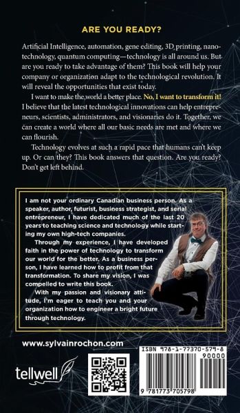 Are You Ready? Artificial Intelligence, automation, gene editing, 3D printing, nanotechnology, quantum computing-technology is all around us. But are you ready to take advantage of them? This book will help your company or organization adapt to the technological revolution. It will reveal the opportunities that exist today. I want to make the world a better place. No, I want to transform it! I believe that the latest technological innovations can help entrepreneurs, scientists, administrators, and visionaries do it. Together, we can create a world where all our basic needs met and where we can flourish. Technology evolves at such a rapid pace that humans can't keep up. Or can they? This book answers that question. Are you ready? Don't get left behind.