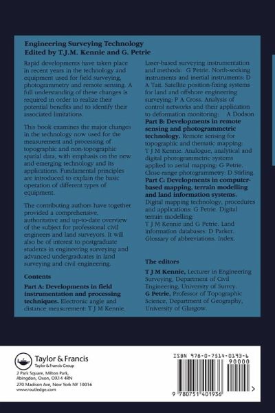 This book examines the major changes in the technology now used for the measurement and processing of topographic and non-topographic spatial data, with emphasis on the new and emerging technology and its applications. Fundamental principles are introduced to explain the basic operation of different types of equipment.