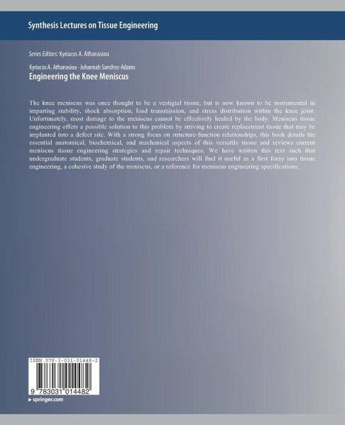The knee meniscus was once thought to be a vestigial tissue, but is now known to be instrumental in imparting stability, shock absorption, load transmission, and stress distribution within the knee joint. Unfortunately, most damage to the meniscus cannot be effectively healed by the body. Meniscus tissue engineering offers a possible solution to this problem by striving to create replacement tissue that may be implanted into a defect site. With a strong focus on structure-function relationships, this book details the essential anatomical, biochemical, and mechanical aspects of this versatile tissue and reviews current meniscus tissue engineering strategies and repair techniques. We have written this text such that undergraduate students, graduate students, and researchers will find it useful as a first foray into tissue engineering, a cohesive study of the meniscus, or a reference for meniscus engineering specifications.Table of Contents: Structure-Function Relationships of the Knee Meniscus / Pathophysiology and the Need for Tissue Engineering / Tissue Engineering of the Knee Meniscus / Current Therapies and Future Directions