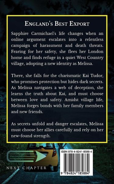 Sapphire Carmichael's life changes when an online argument escalates into a relentless campaign of harassment and death threats. Fearing for her safety, she flees her London home and finds refuge in a quiet West Country village, adopting a new identity as Melissa. There, she falls for the charismatic Kai Tudor, who promises protection but hides dark secrets. As Melissa navigates a web of deception, she learns the truth about Kai, and must choose between love and safety. Amidst village life, Melissa forges bonds with her family members and new friends. As secrets unfold and danger escalates, Melissa must choose her allies carefully and rely on her new-found strength.