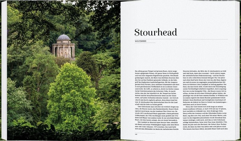 Lesenden sofort in ihren Bann zieht. Die emotionalisierenden Bildmomente, wie das dramatisch in Szene gesetzte Botting Green House (S. 34), dessen Spiegelung im Wasser und der gewittergraue Himmel ein perfektes Bild der melancholischen Schönheit abgeben, sind meisterhaft eingefangen. Romantische Einblicke über die Backsteinbrücke (S. 127) und märchenhafte Momentaufnahmen vom Eingang zur Grotte (S. 240) machen deutlich, wie sehr die Natur und die Gartenkunst miteinander verwoben sind.