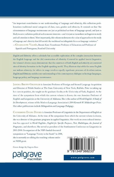 This volume examines the complex interaction between the English language and the construction of ethnicity in the global English-speaking world. The essays demonstrate that the constructs of both English and ethnicity are contested sites of identity formation.