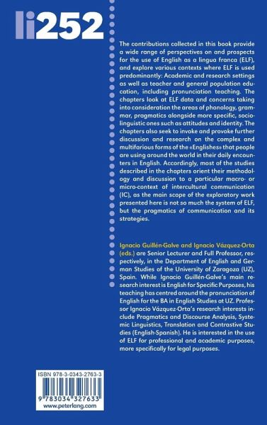 Ignacio Guillén-Galve/Ignacio Vázquez-Orta: Introduction Part I: ELF and Intercultural Communication - Concepción Orna-Montesinos: Reconceptualizing Linguistic Diversity and its Role in Intercultural Communication: A Literature Review - Lili Cavalheiro: The Importance of ELF and Intercultural Communication in Teacher Education: A Case Study from Portugal Maria Grazia Guido/Pietro Luigi Iaia/Lucia Errico: ELF-mediated Intercultural Communication between Migrants and Tourists in an Italian Project of Responsible Tourism: A Multimodal Ethnopoetic Approach to Modern and Classical Sea-voyage Narratives - Part II: ELF in Academic and Research Settings - Isabel Herrando-Rodrigo: May the Status of English as the Lingua Franca of International Communication Affect Learners' Attitudes towards Language Learning? - Silvia Murillo: Discourse Markers and Academic Writing in English as a Lingua Franca - Isabel Corona: «It is a great pleasure ...»: Chairing at Academic Conferences - Pilar Mur-Dueñas: Exploring Interpersonality Features in ELF Research Articles: From Rhetorical and Discursive Homogeneity to Lexico-Grammatical Hybridity - Part III: ELF and Online Academic Communication - Rosa Lorés-Sanz: The Use of ELF in International Online Conference Announcements: Changing Modes and Means of Academic Communication - María José Luzón: Academic Social Networking Sites (ASNS) as ELF Settings: An Analysis of Interactional Strategies in ResearchGate Discussions - Part IV: ELF and Pronunciation Teaching - Jolanta Szpyra-KozLowska: English Pronunciation in Intercultural Communication - ELF Assumptions versus Accent Attitudes: Implications for Foreign Learners' Phonetic Instruction - Ignacio Guillén-Galve: Investigating the Teaching of the Pronunciation of English as a Lingua Franca to Adult Learners of English for Academic Purposes: A case for Fine-Tuning at the Intersection of Socio-Linguistics and English Language Education - Notes on Contributors